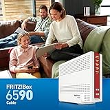 Die komfortable FRITZ!Box 6590 Cable verfügt über eine innovative VoIP-Telefonanlage mit Faxfunktion für alle Analog-, IP-, ISDN- und DECT-Telefone. Mit der Telefonie-Einrichtung lassen sich Anruflisten verwalten, Anrufbeantworter einrichten oder Sprachnachrichten via E-Mail empfangen. Da der Kabel-Router parallel auf den 2,4- und 5 GHz-Frequenzbändern funkt, werden höchste Datenraten erzielt, sodass für jedes Gerät genügend Kapazität vorhanden ist. Ein durchdachtes Sicherheitskonzept verhindert unbefugten Datenzugriff. Die FRITZ!Box 6590 Cable mit Topausstattung ist ein stabiler Router für den Highspeed-Kabelanschluss mit reichhaltigen Einsatzmöglichkeiten von HD-Telefonie über Smart Home-Steuerung bis zu parallelen Streams von unverschlüsselten TV-Programmen. Vor- und Nachteile auf einen Blick: